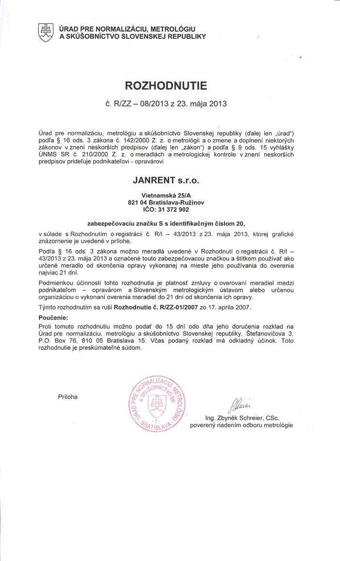 - Rozhodnutie o pridelení zabezpečovacej značky